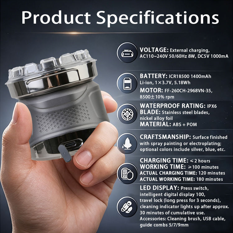 Mini rasoir électrique professionnel de poche personnalisé 6D flottant, étanche IPX6, rechargeable par USB avec écran LED, pour la maison, le camping-car et l'hôtel