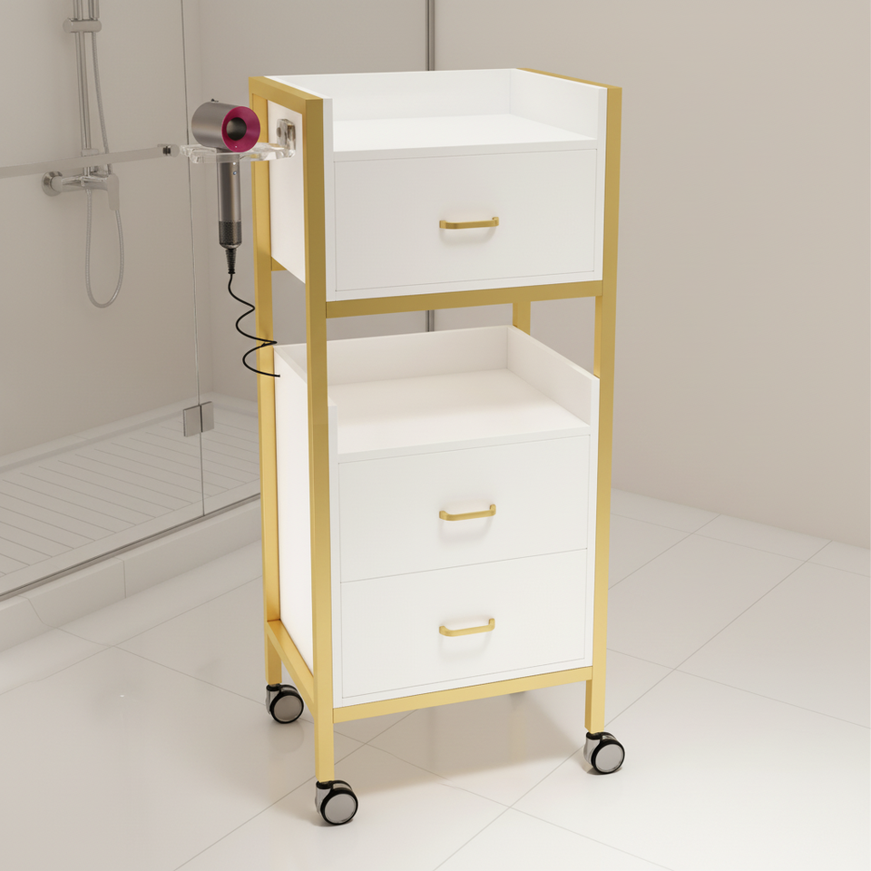 Chariot de rangement mobile professionnel et moderne pour salon avec tiroirs - Meuble roulant multifonctionnel pour la beauté et la coiffure