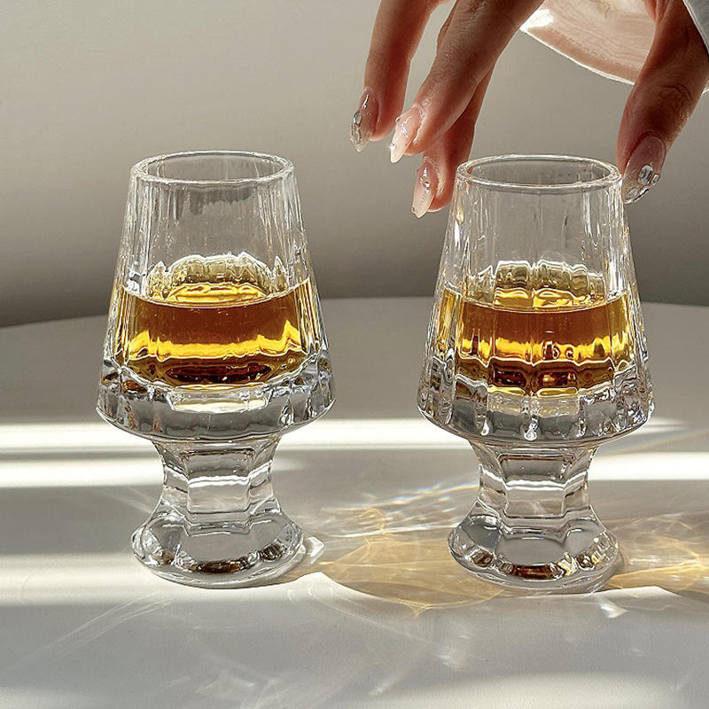 Verre à whisky rayé en cristal, style moderne et épuré, écologique, compatible lave-vaisselle et micro-ondes, pour la dégustation de whisky