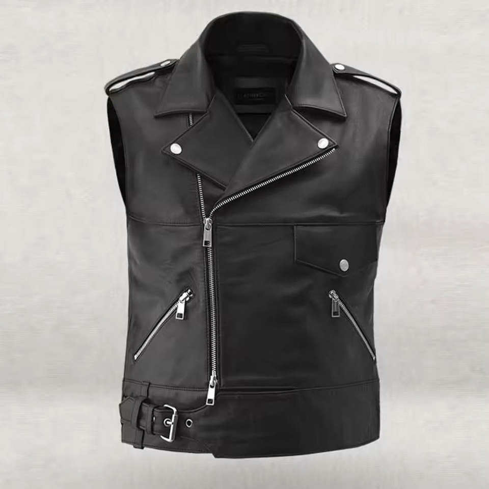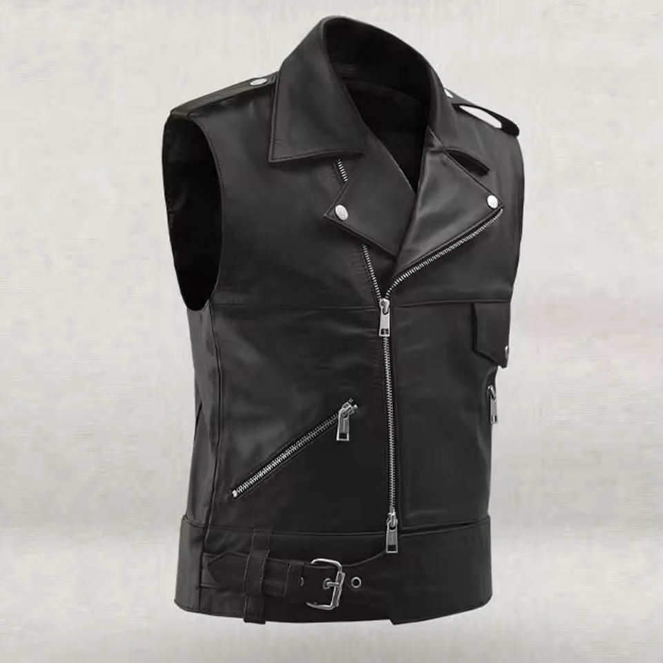 Veste / gilet sans manches en cuir véritable pour hommes