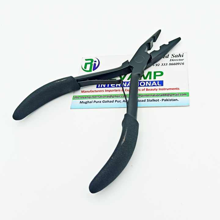 Outils d'extension de cheveux multifonctionnels professionnels pince d'extension de cheveux en acier inoxydable de couleur noire poignée en caoutchouc souple 2