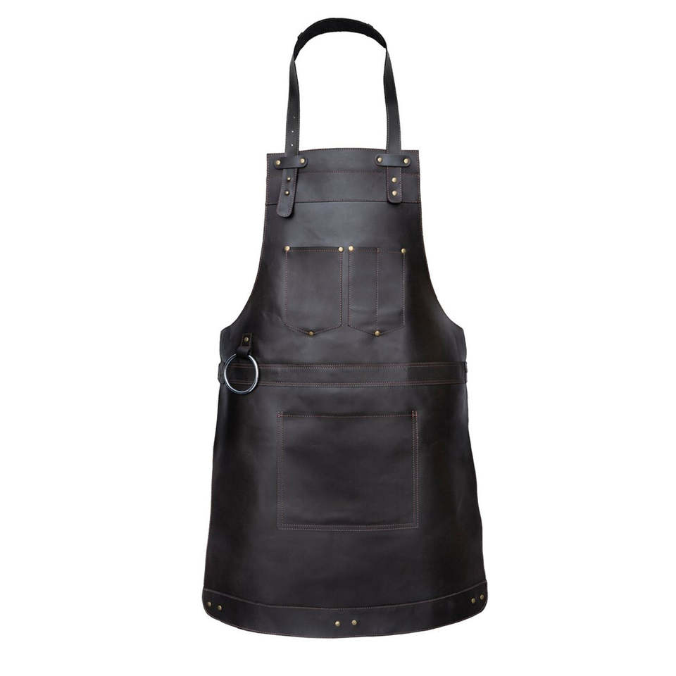 Tablier de travail professionnel multifonctionnel de qualité supérieure certifié CE en cuir véritable, tablier de barbecue de luxe résistant aux flammes pour la soudure