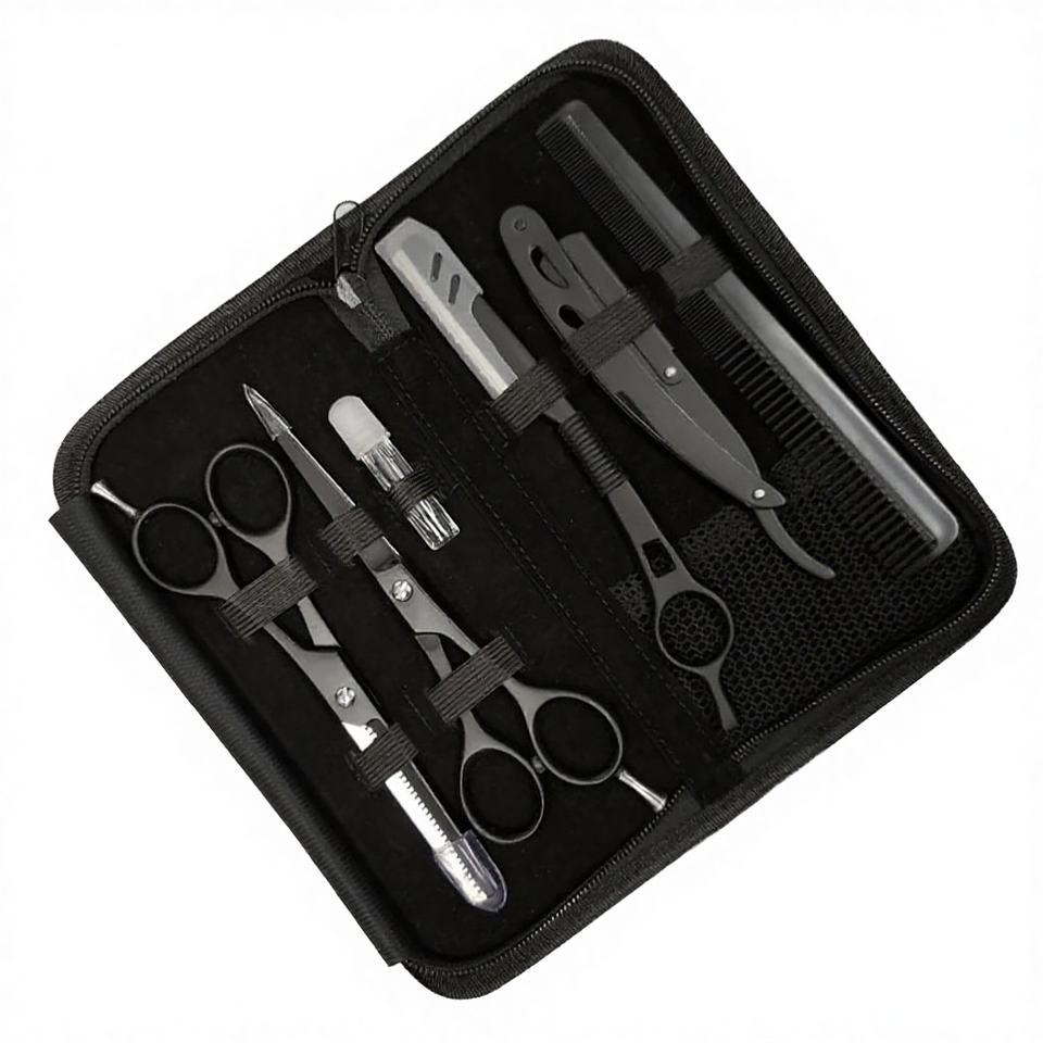 Kit professionnel de ciseaux à ongles : ciseaux droits, ciseaux à effiler, peigne, cape, manche pliable en acier inoxydable durable