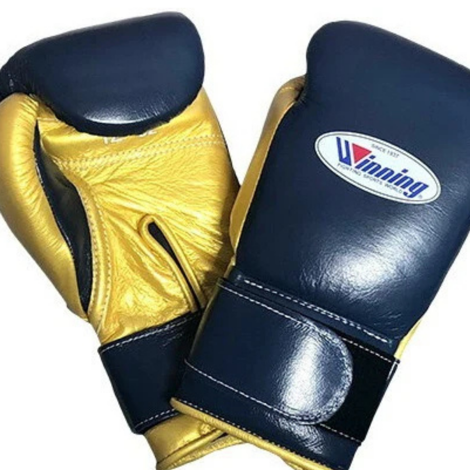 Gants de boxe professionnels en cuir doré marine avec fermeture velcro au poignet, pour l'entraînement et le sparring, pour hommes et femmes