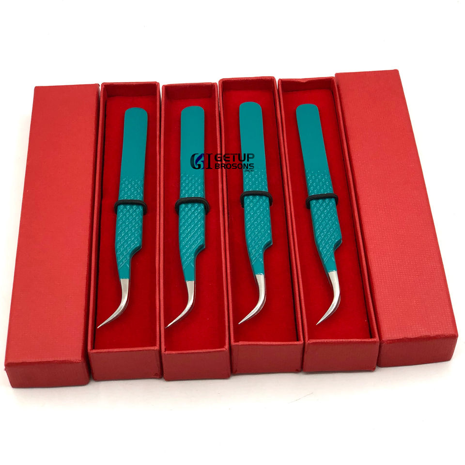 Nouvelle pince à épiler professionnelle pour extension de cils en acier inoxydable avec revêtement en poudre de sirène incurvée Instruments de beauté avec logo personnalisé