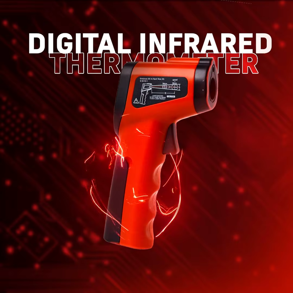 Thermomètre infrarouge professionnel sans contact pour les télécommunications - Plage de -50°C à 380°C - Rapport distance-point 12:1 - Précision