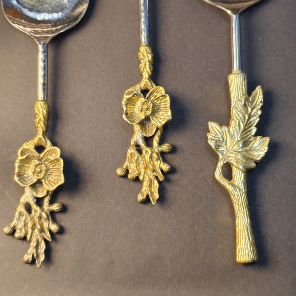 Ensemble de service professionnel en acier inoxydable au design orchidée, texture martelée, comprenant des cuillères de buffet, des serveurs à spaghetti et des pinces à glace