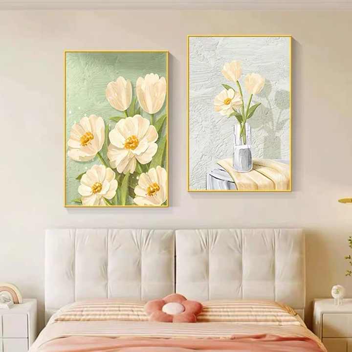 Emballage professionnel pour grande peinture à l'huile avec cadre en bois Design Art déco et motif de nature morte pour la suspension de mariage