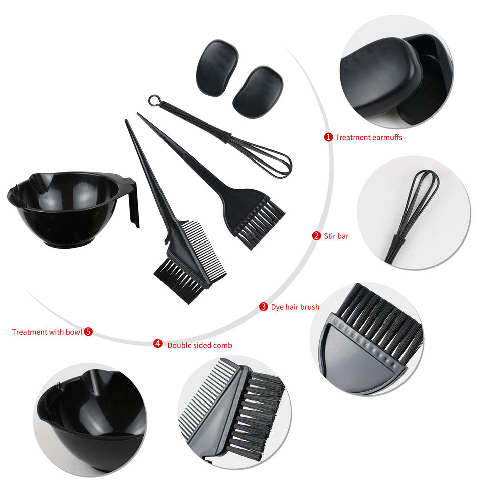 Kit professionnel de coloration capillaire en plastique pour salon et usage domestique, avec pinceau de teinture, bol de teinture, protège-oreilles, mélangeur et brosse à cheveux, outil DIY