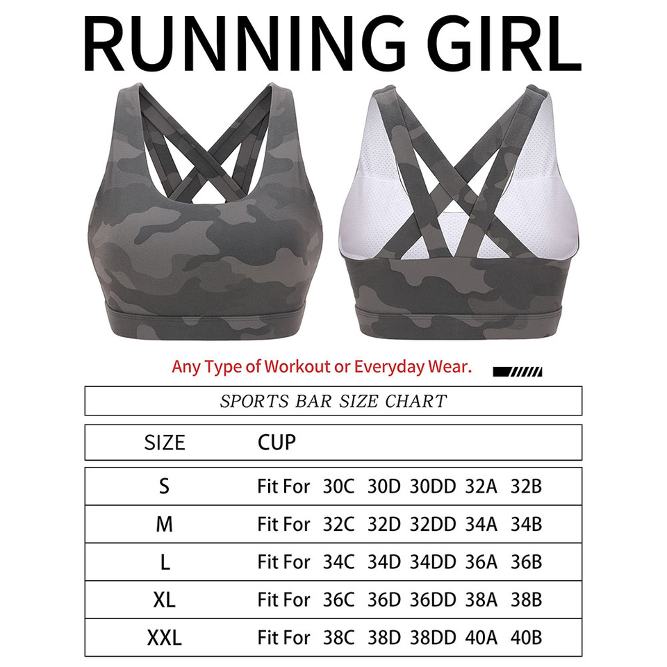 Soutiens-gorge de sport professionnels sans coutures, grande taille, imprimé léopard camouflage, rembourrés avec coussinets de protection pour femmes, pour la gym et l'entraînement