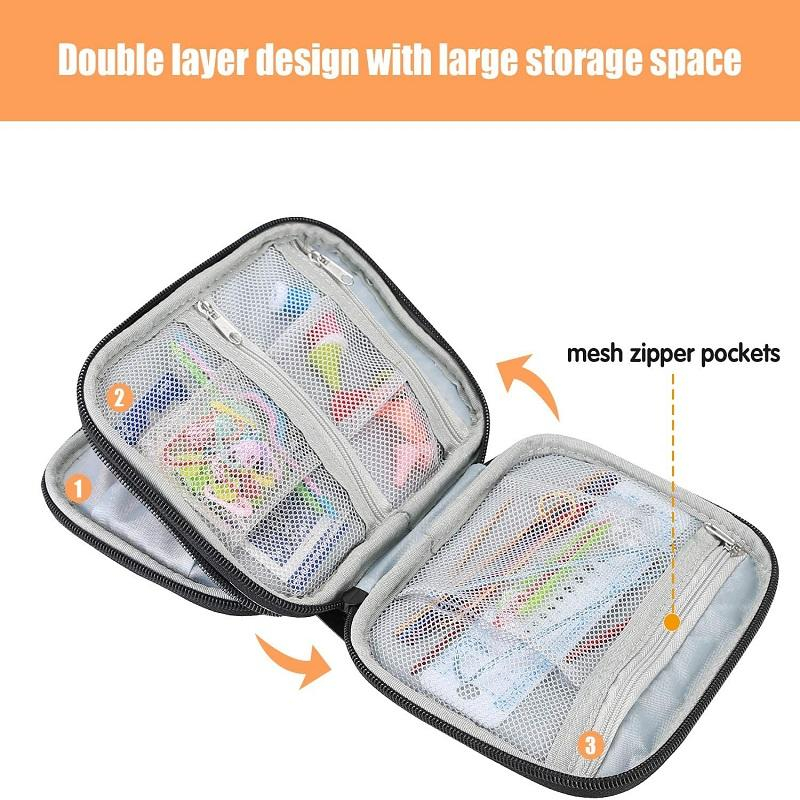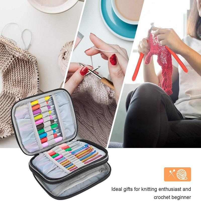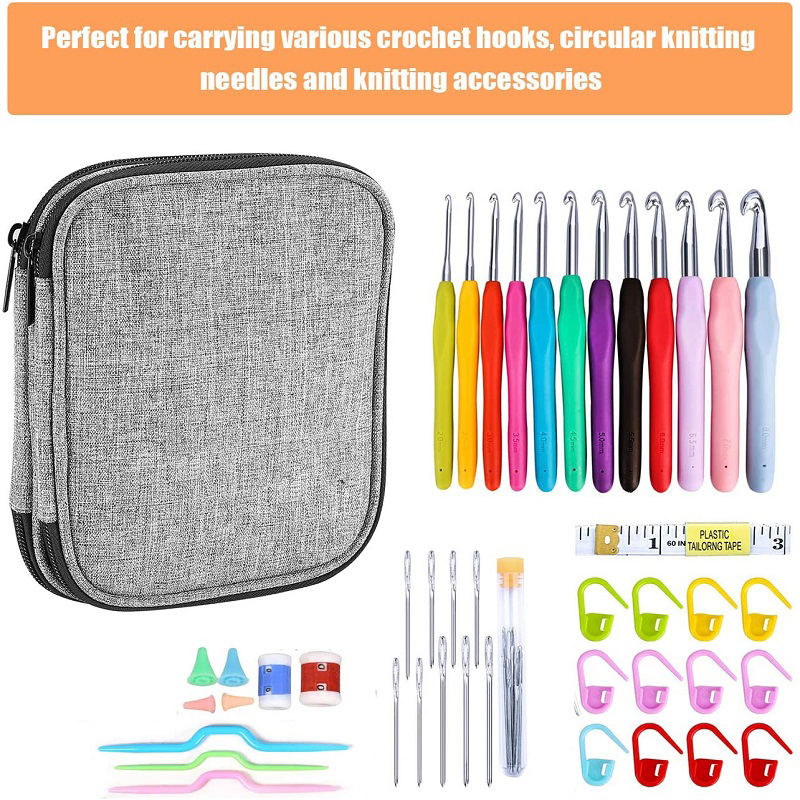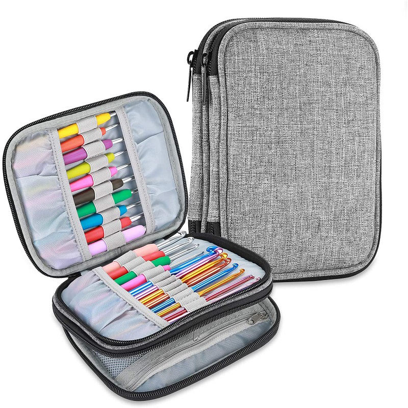 Étui professionnel grande capacité pour aiguilles à tricoter avec fermeture éclair, 12+ compartiments, organiseur de voyage pour aiguilles circulaires et droites