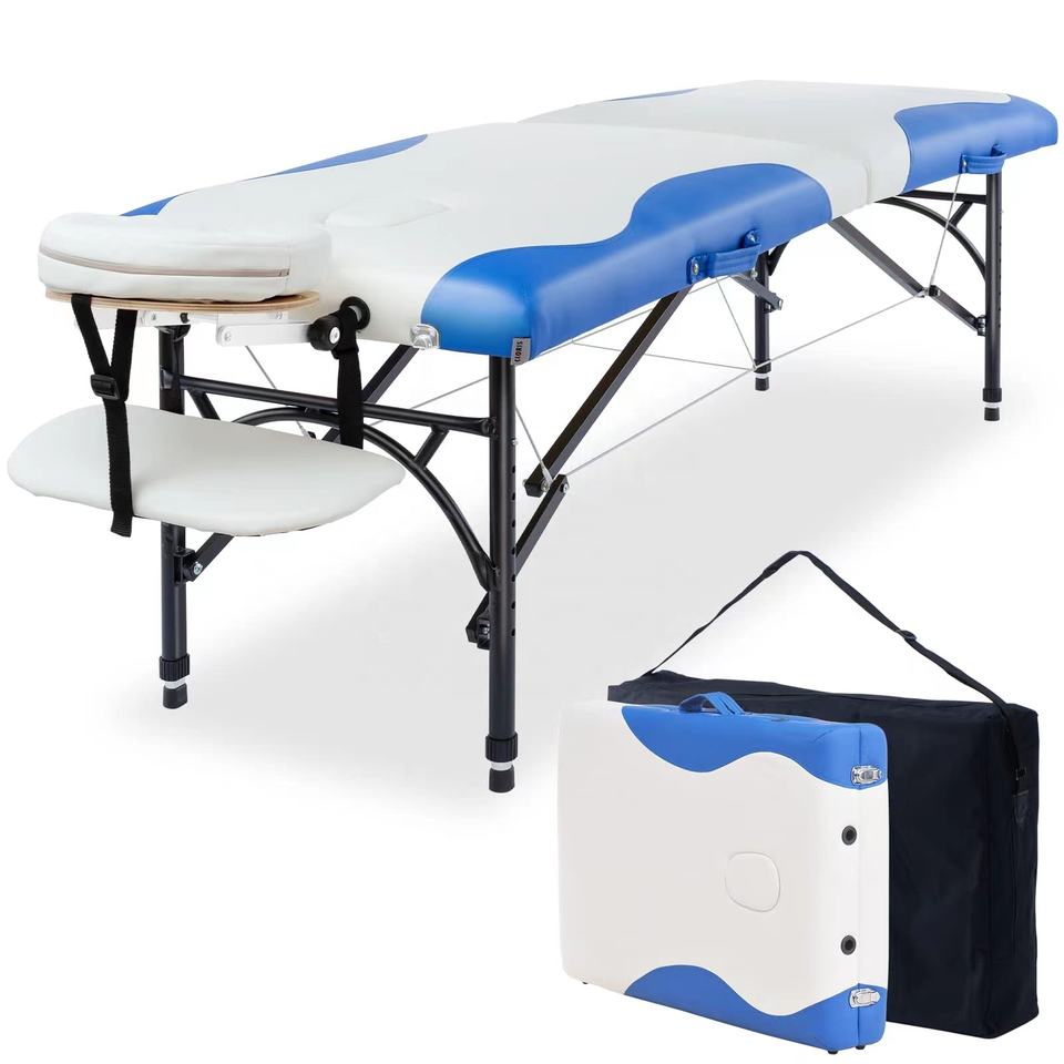 Table de massage portable professionnelle, pliable en deux, légère, pour salon de beauté, spa, lit de tatouage, sac de transport, design moderne, cuir synthétique