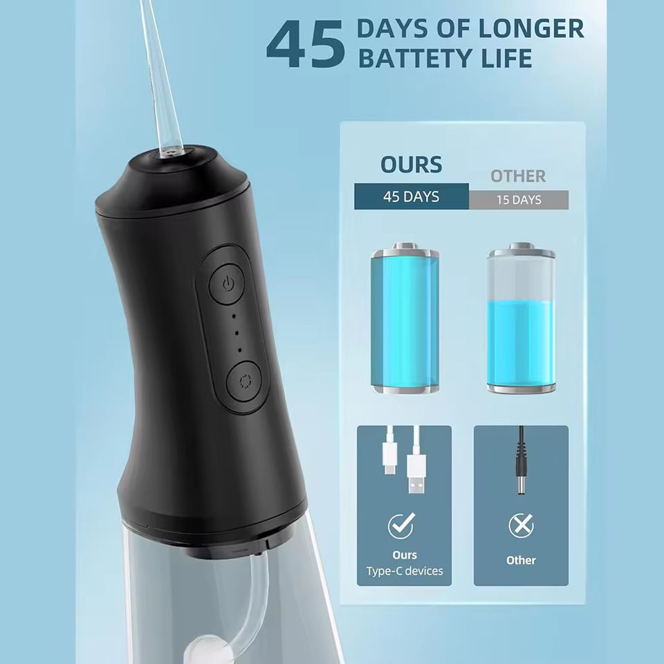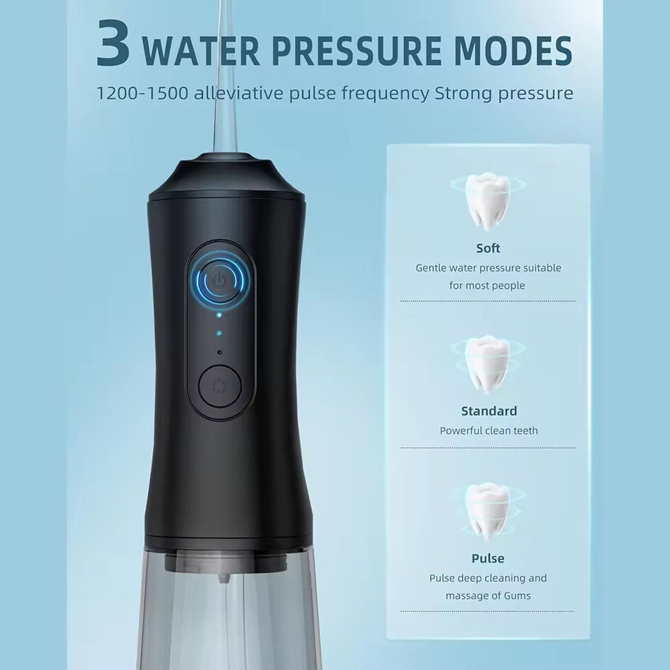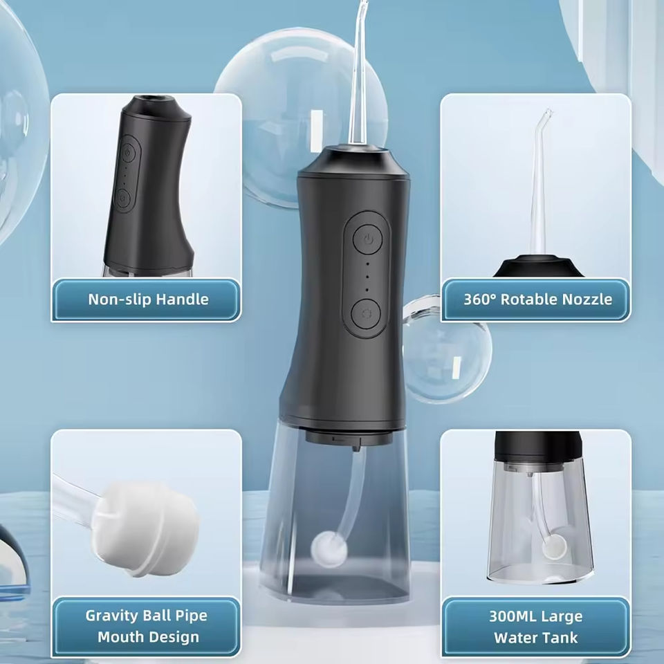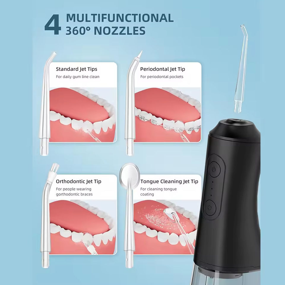 Hydropulseur dentaire sans fil professionnel portable puissant IPX7 étanche Jet d'eau dentaire 360 ° Buse de jet d'eau électrique