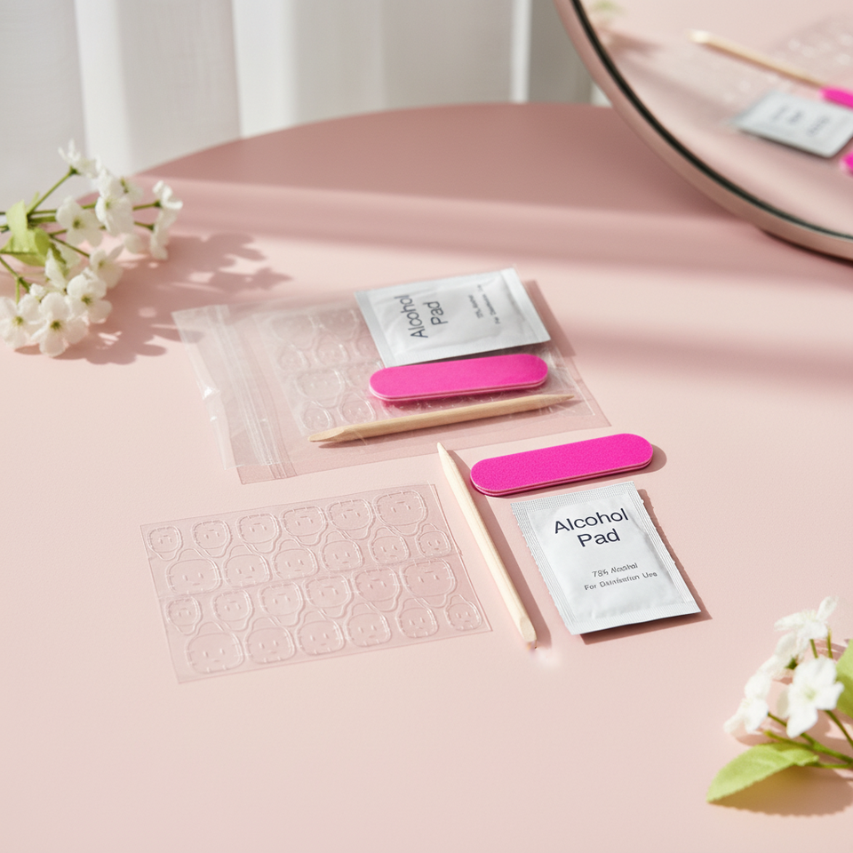 Kit professionnel portable d'outils pour ongles : autocollants en gelée, bâtonnets en bois, lingettes alcoolisées, lime à ongles, kits d'ongles, faux ongles