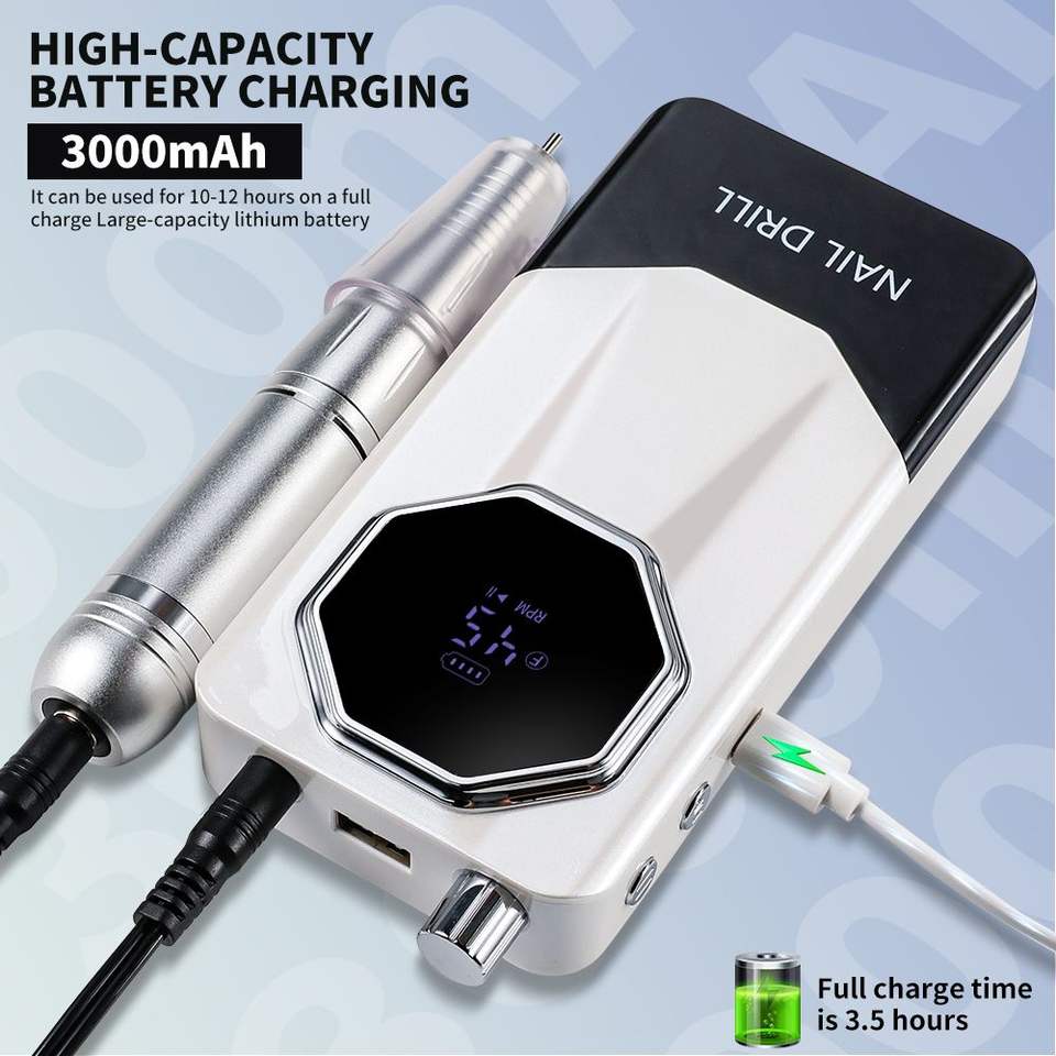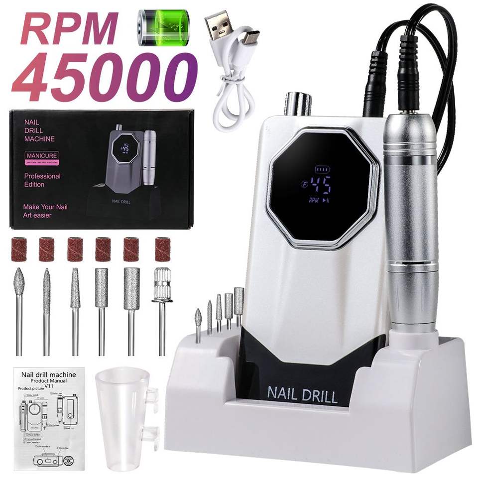 Machine à ongles électrique professionnelle portable rechargeable 45000 tr/min pour gel, vernis et manucure