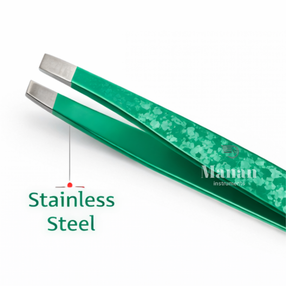 Pince à épiler professionnelle de qualité supérieure, durable, à motif vert, en acier inoxydable, à pointe inclinée, pour l'épilation des sourcils, outil cosmétique