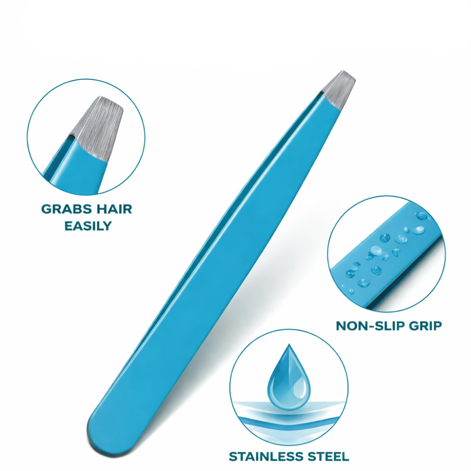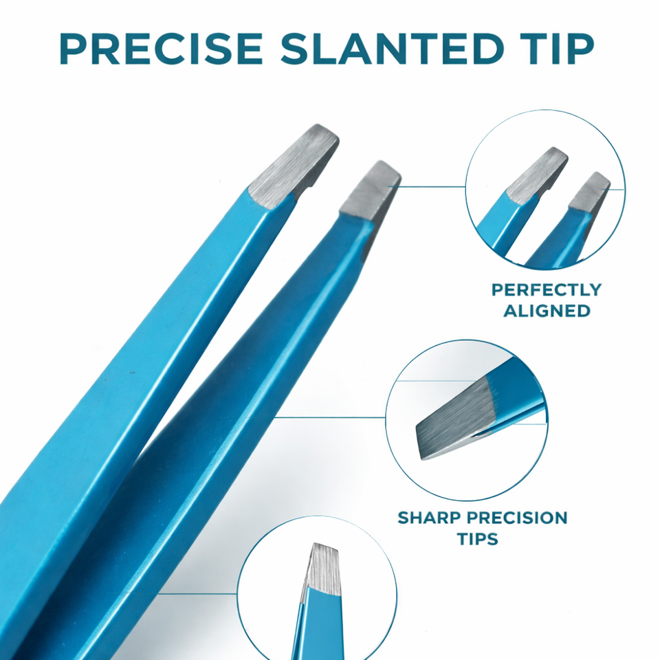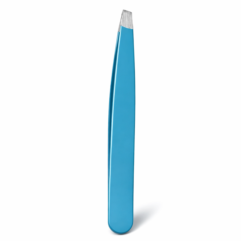 Pince à épiler professionnelle de qualité supérieure en acier inoxydable à pointe inclinée, bleue, écologique, durable, légère et de précision pour les poils