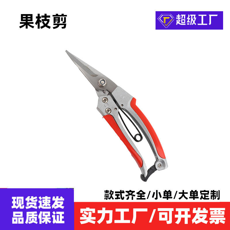 Sécateur professionnel en acier inoxydable, tête droite, design papillon, poignée en plastique rouge, pour branches de 20-30 mm