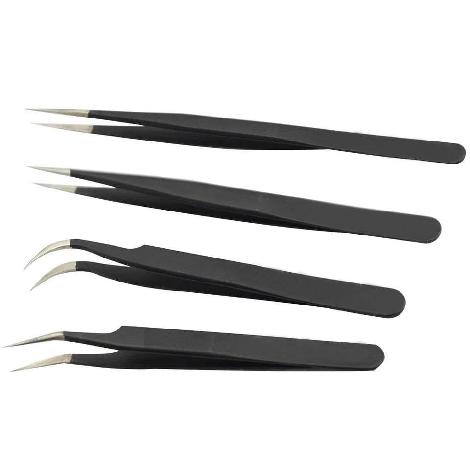 Professional Quality Diamond Cut Grip Eyelash Extension Tweezers Premium for Lash Artists Black Color Eyelash Tweezers