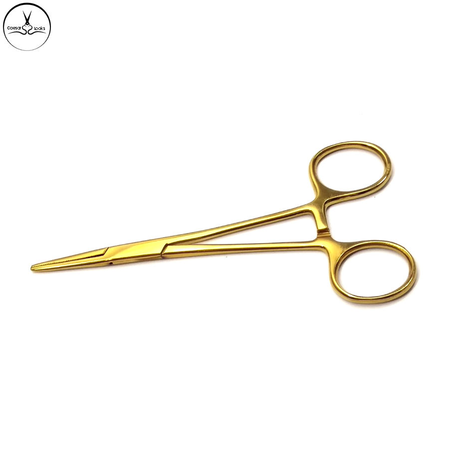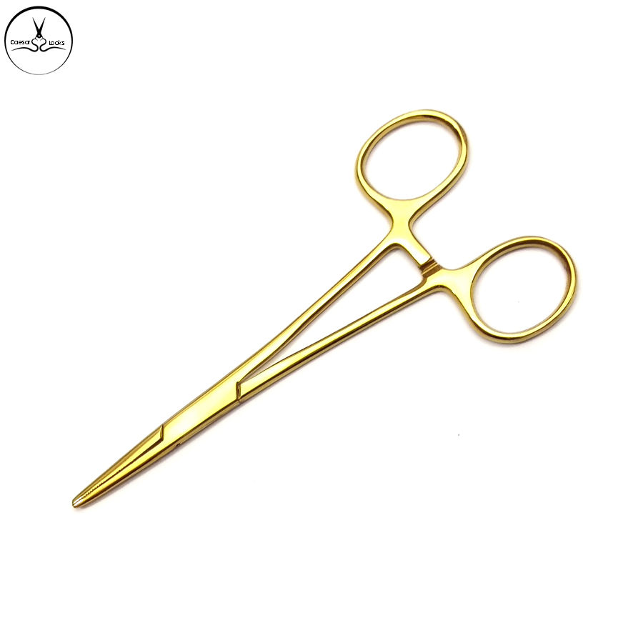 Qualité professionnelle couleur or 12.5CM pince en acier inoxydable droite incurvée moustique corps Piercing outils oreille aiguille de tatouage