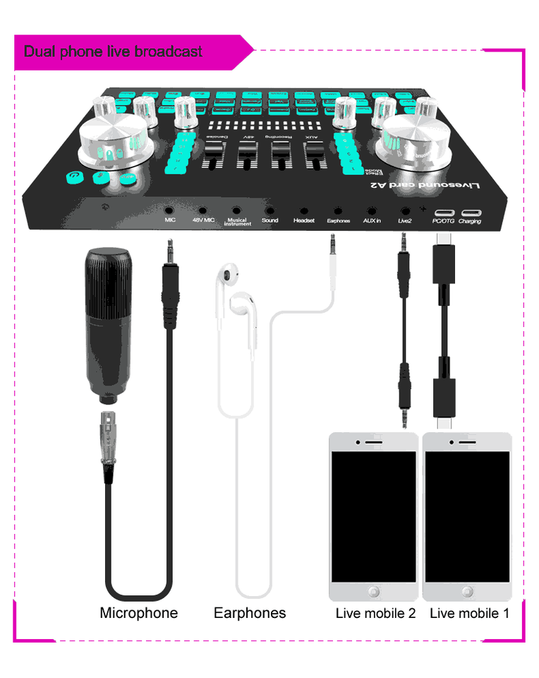 Carte son A2 de qualité professionnelle, nouvelle, avec prise 48V, prise OTG, carte son d'enregistrement, équipement de diffusion en direct pour karaoké