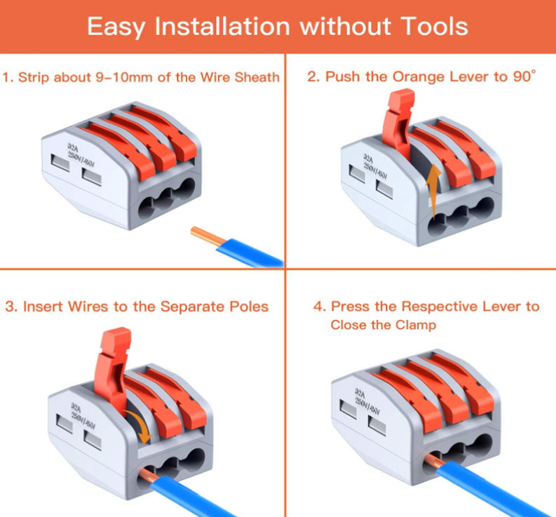 Connecteur de câblage rapide professionnel à insertion rapide, bornier de raccordement compact pour boîtier de jonction, ports multiples