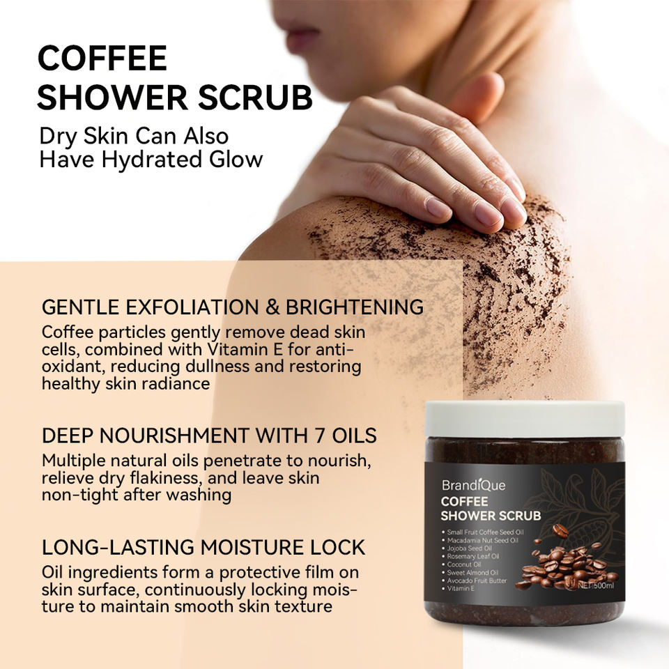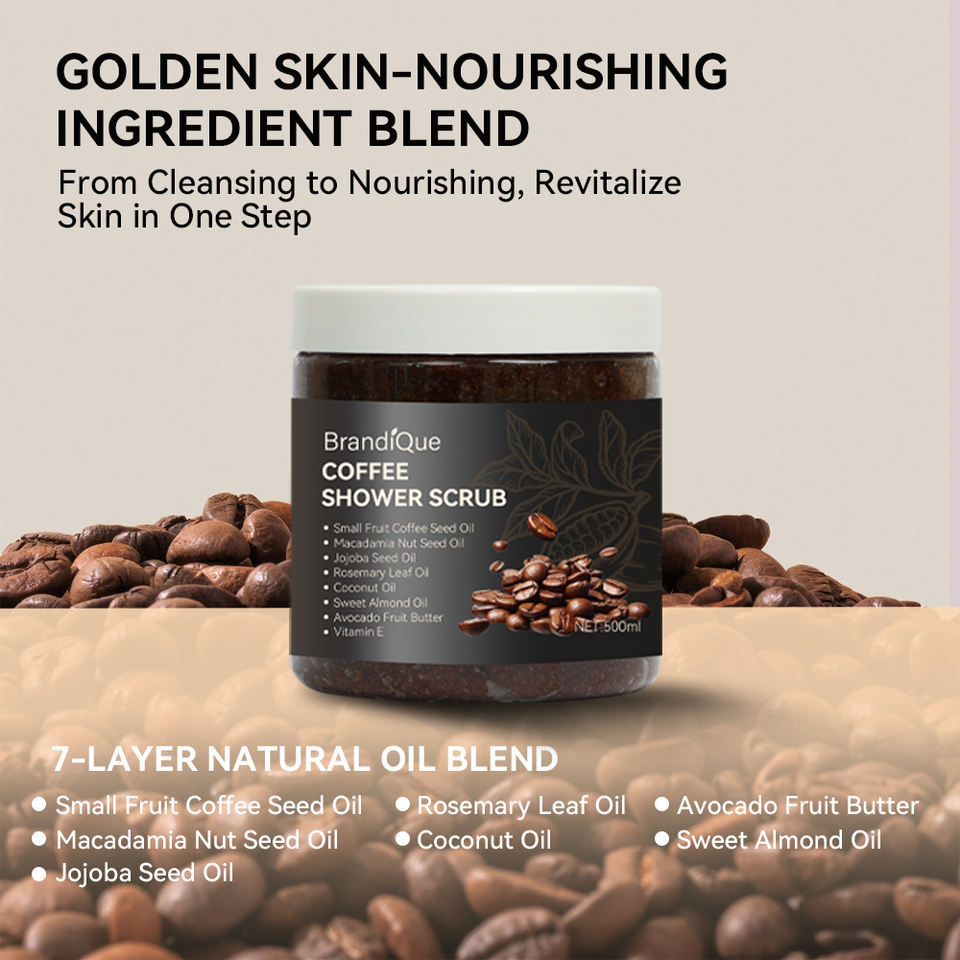Équipe professionnelle de R & D organique blanchissant hydratant exfoliant nettoyant en profondeur visage et corps gommage au café