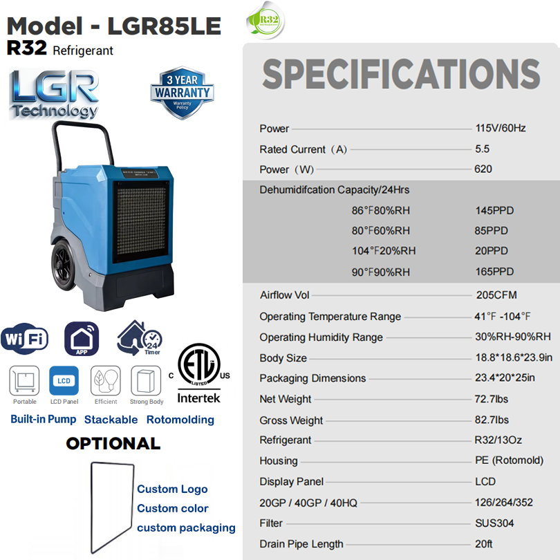 Déshumidificateurs industriels professionnels pour la restauration des dommages causés par l'eau 85PPD LGR