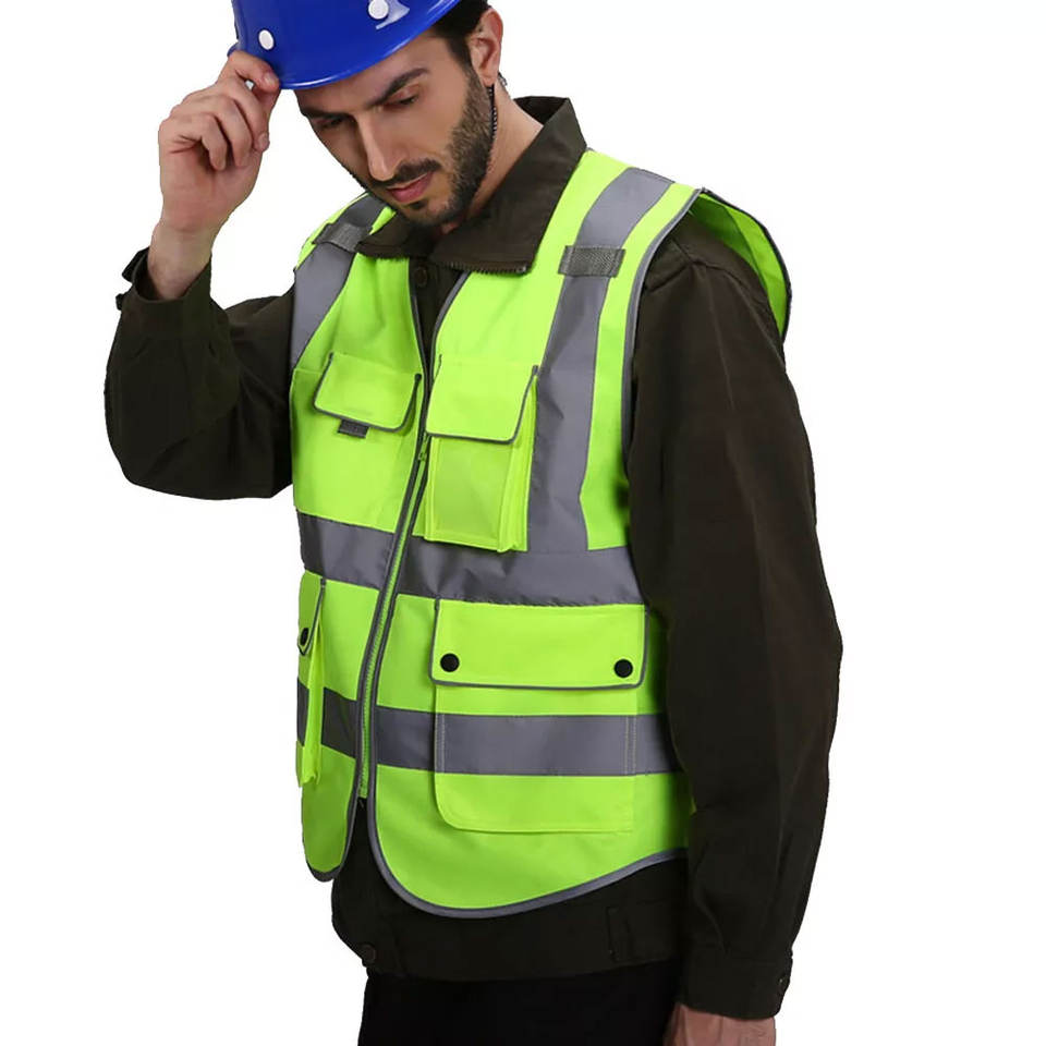 Gilet de travail respirant réversible professionnel pour adultes Gilet de sécurité d'été avec rayures réfléchissantes et poches à outils