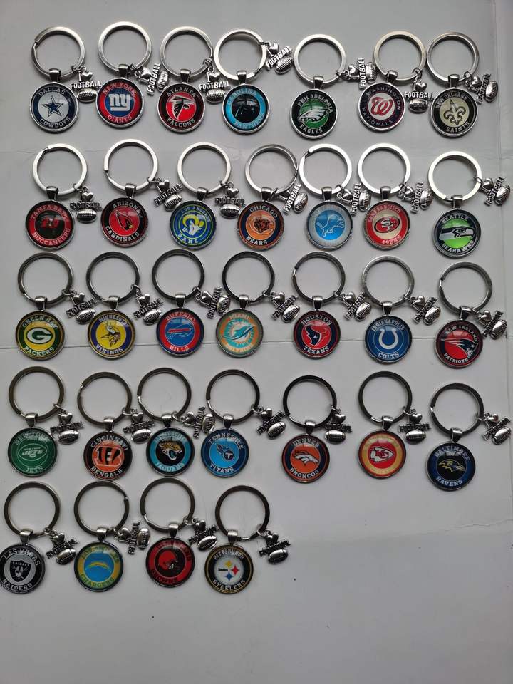 Professionnel Rugby League Motif Porte-clés Verre Dôme Cabochon Porte-clés Sac De Voiture Porte-clés Anneau Titulaire Charmes Bijoux Cadeaux