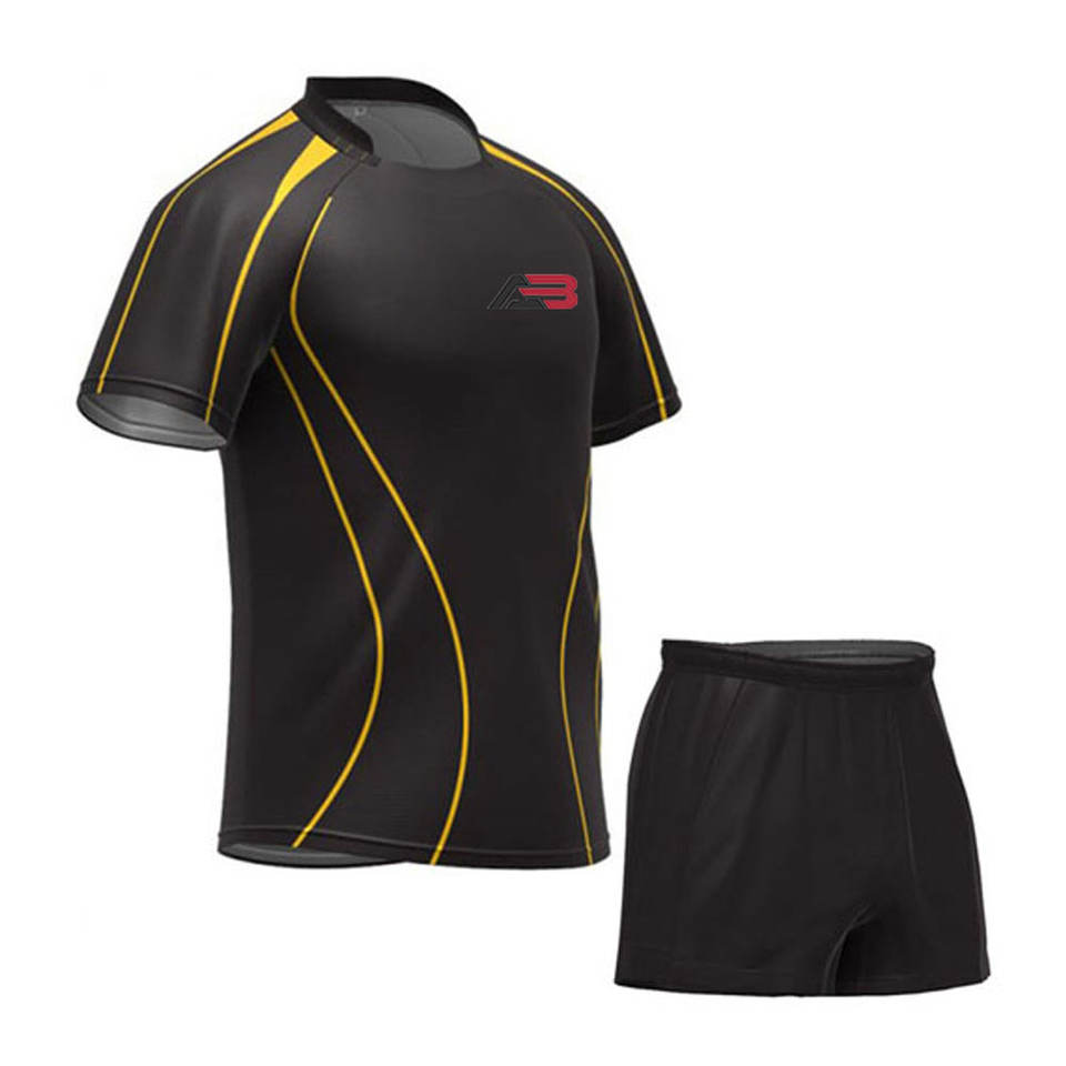Tenue de rugby professionnelle, maillot et short pour l'entraînement et la compétition en équipe.