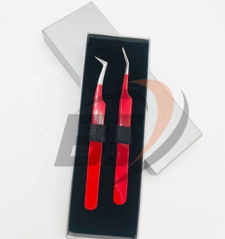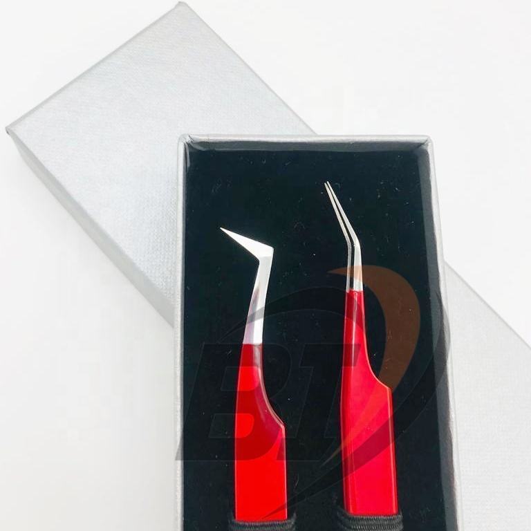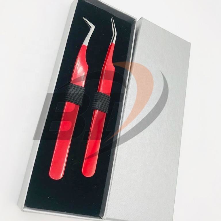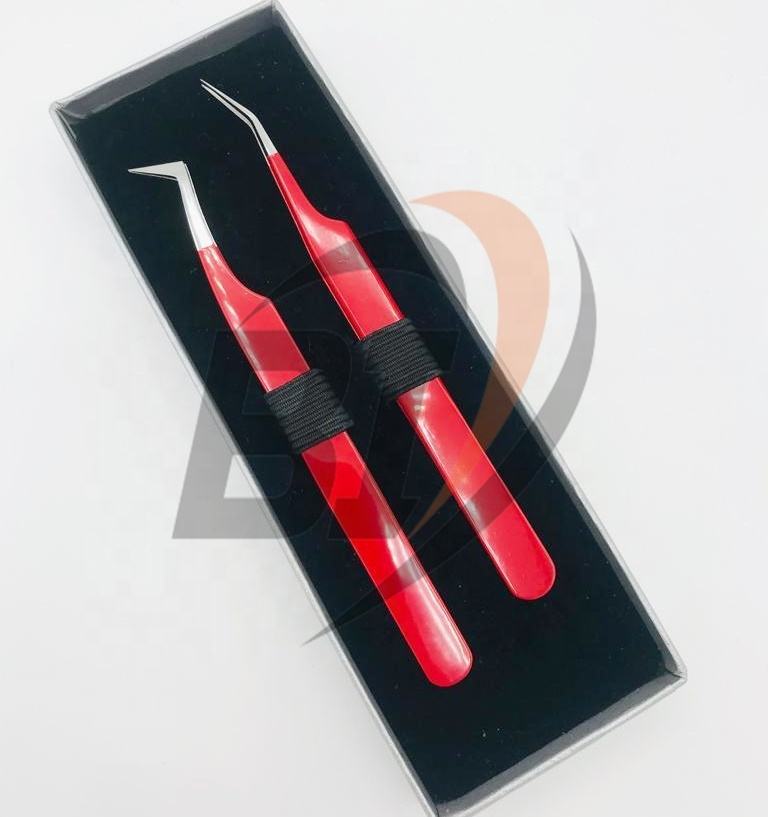Pince à épiler d'isolation de Volume russe professionnelle pince à épiler d'extension de cils en acier inoxydable pince à épiler enduite de couleur rouge pointue