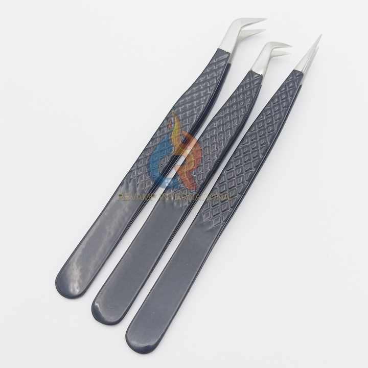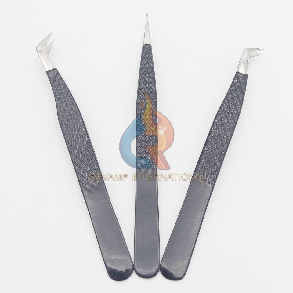 Volume russe professionnel isolation droite pince à épiler en acier inoxydable pince à épiler couleur noire fibre pointe pince à cils