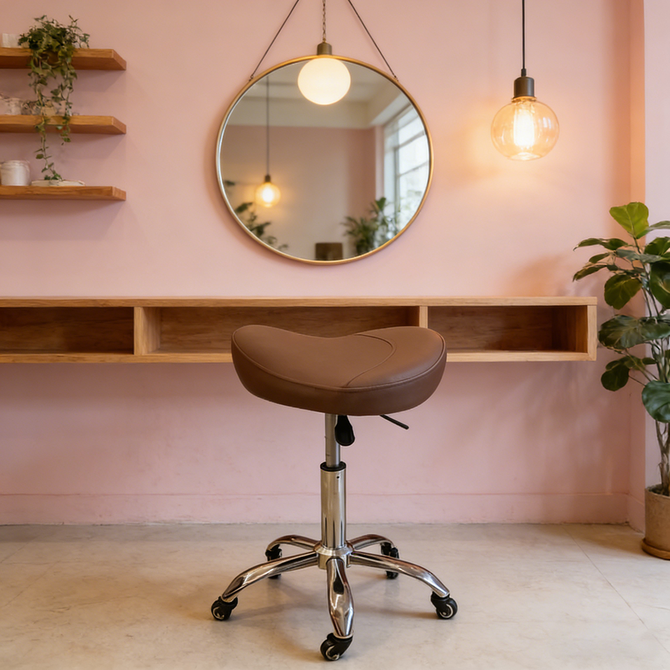Tabouret de selle professionnel à roulettes pour salon de beauté, tabouret hydraulique réglable avec roues en acier inoxydable, pivotant à 360°