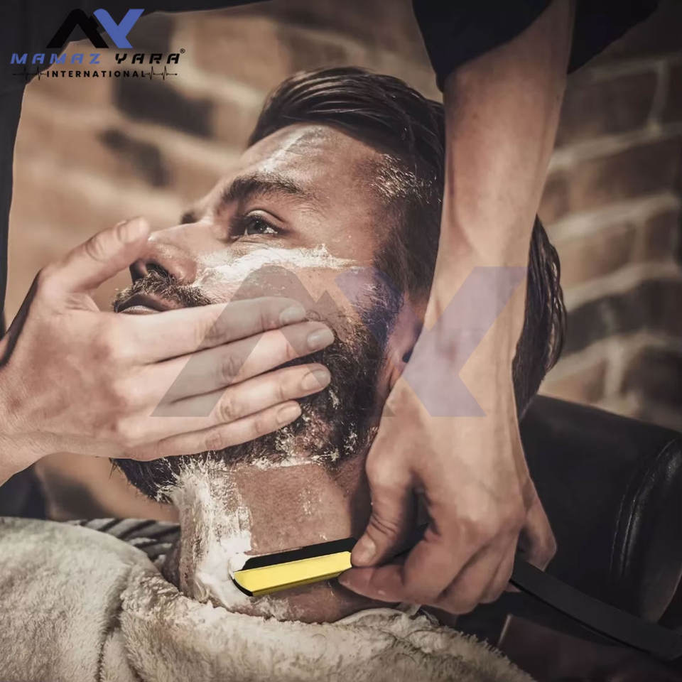 Rasoir de barbier professionnel en acier inoxydable classique avec lame droite pour un rasage et une toilettage de précision