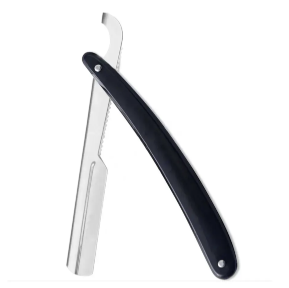 Rasoir à raser à bord droit pliant de salon professionnel pour hommes dernière conception avec poignée en plastique et lame de rasoir