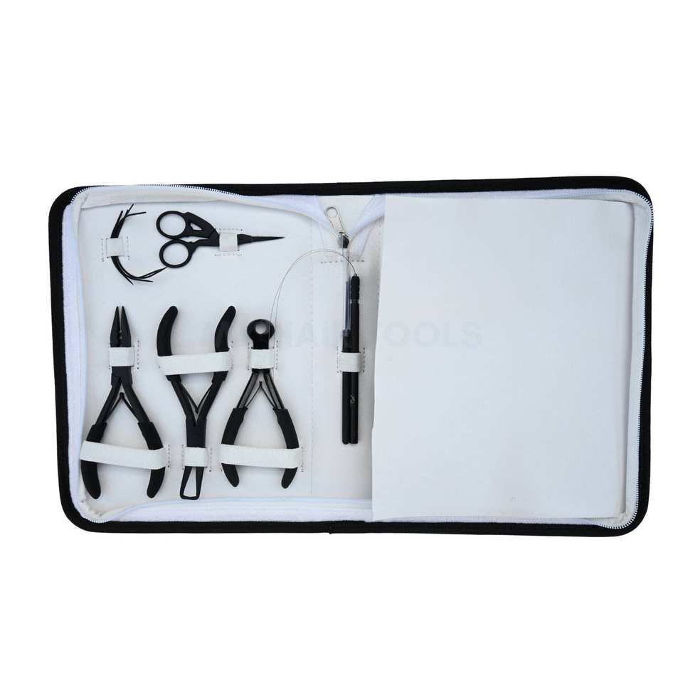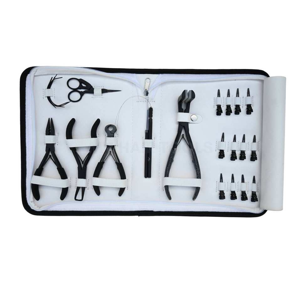 Kit d'outils professionnel pour extensions capillaires de salon avec pinces pour extensions à bandes, pince à sertir à trois trous, coupe-adhésif, clips, enfile-boucles, aiguilles à crochet