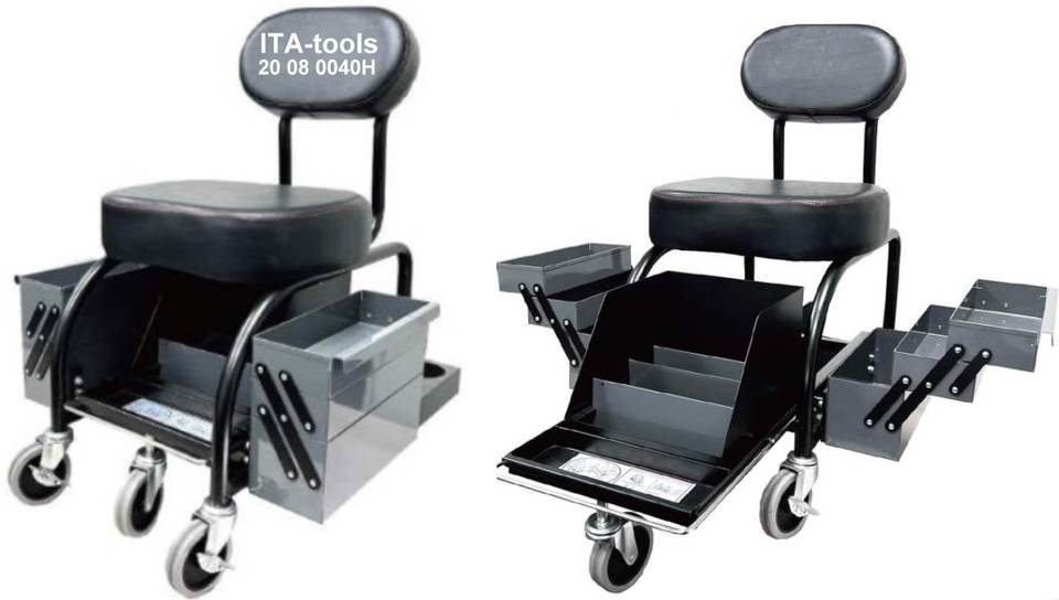 Shop Seat with Expandable Side Trays.