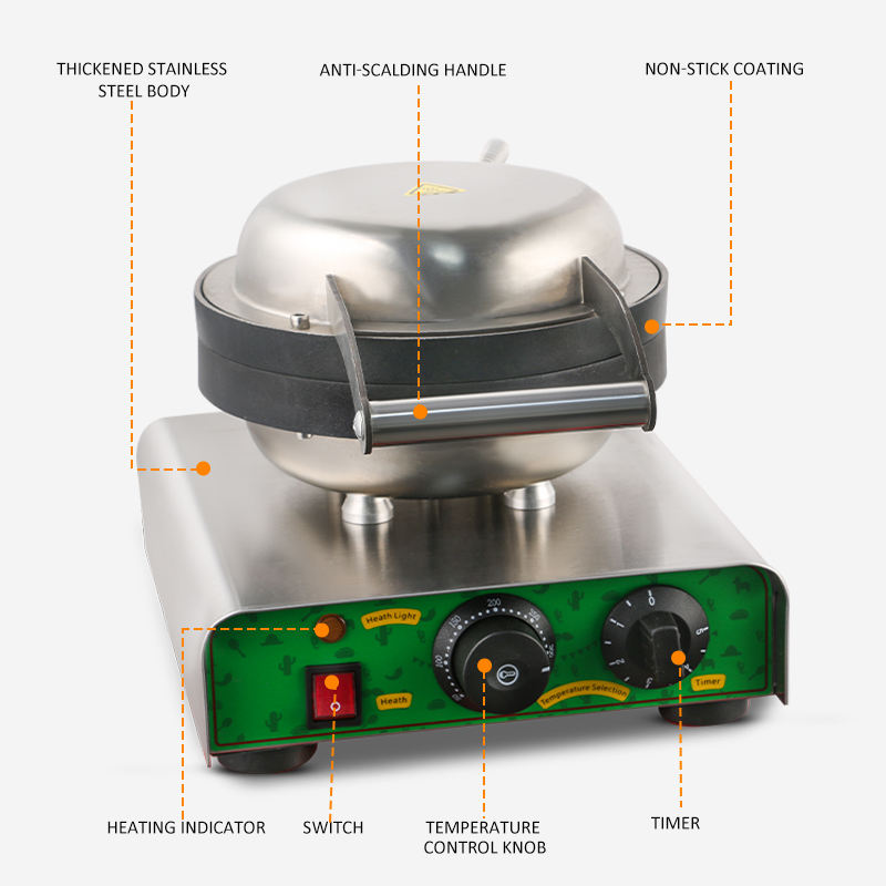Machine à gaufres professionnelle en fonte d'acier inoxydable, plaque unique en forme de cœur, certifiée CE, nouvelle machine commerciale à œufs de haute qualité