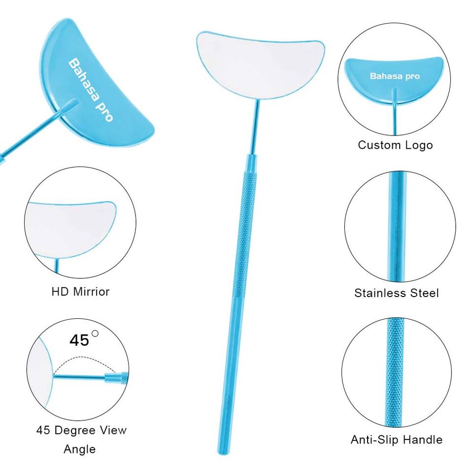 Miroirs à cils portables professionnels en acier inoxydable bleu ciel, écologiques, pour maquillage et extensions de cils par Bahasa Pro