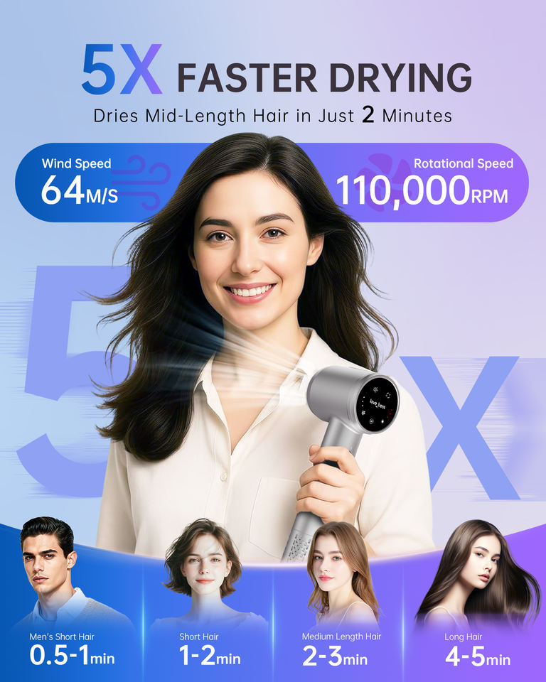 Sèche-cheveux ionique intelligent professionnel affichage LED sèche-cheveux thermique à faible bruit pour cheveux bouclés hôtel ménage diffuseur en plastique style