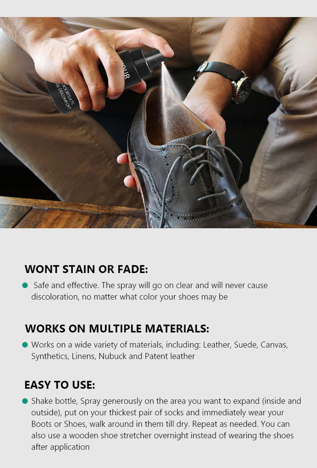 Chaussures de sport professionnelles Spray extensible pour chaussures en daim Adoucissant et civière pour chaussures en cuir, bottes