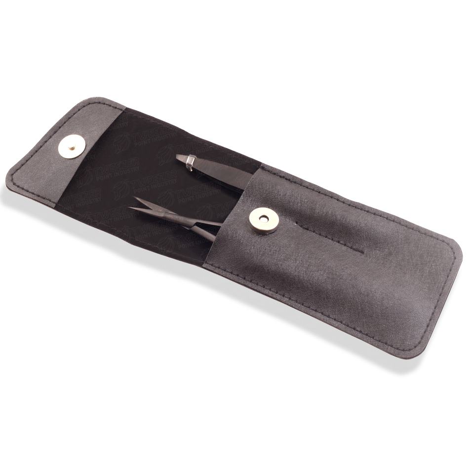 Pince à épiler professionnelle en acier inoxydable pour sourcils et poils du nez, avec étui en cuir