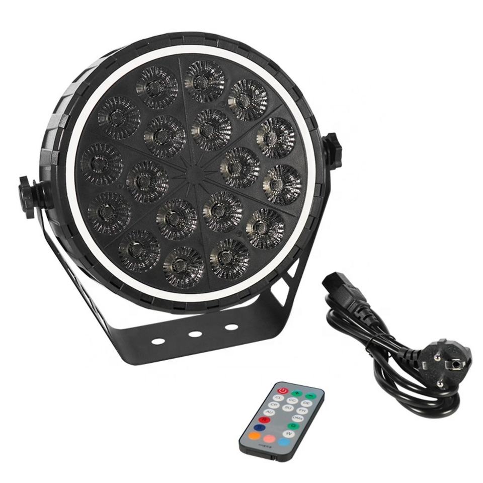 Projecteur PAR professionnel 18 LED en plastique avec anneau LED RGBW 4-en-1, lumière DMX colorée