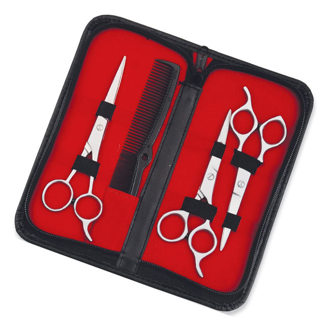 Ensemble professionnel de ciseaux et de peignes en acier inoxydable de 4 pièces avec cisailles à effiler et peigne de coiffage