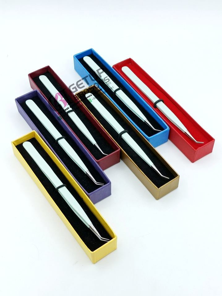Professional Stainless Steel 45 Degree Straight Sea Glass Eyelash Extension Tweezers Powder Coating Silver Tip Beauty Instrument