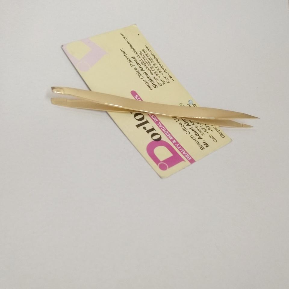 Pince à sourcils professionnelle à double extrémité en acier inoxydable avec pointe pointue inclinée marque privée outil de beauté plaqué or