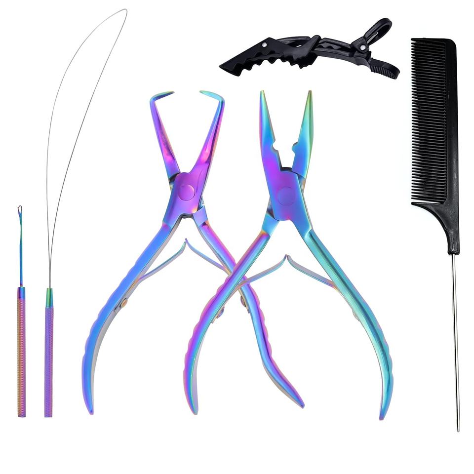 Kit d'outils d'extension de cheveux professionnel en acier inoxydable: Microlink & Itip Extensions Essentials