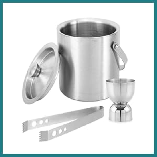 Stainless Steel Ice Bucket + Tong + V Peg Measure