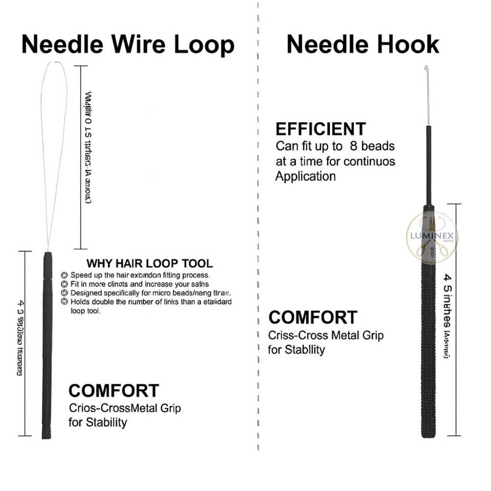 Kit d'outils professionnel léger en acier inoxydable pour extensions capillaires / Ensemble d'application micro-anneaux et nano-perles / Noir de luxe pour cheveux
